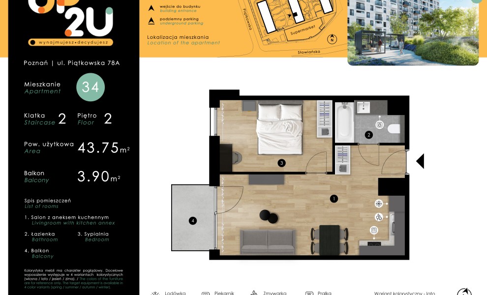 Cena zawiera: opłaty administracyjne, czynsz najmu, szybki internet.