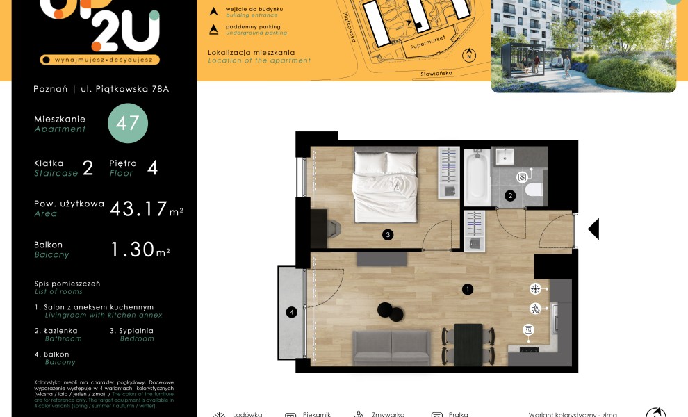 Cena zawiera: opłaty administracyjne, czynsz najmu, szybki internet.