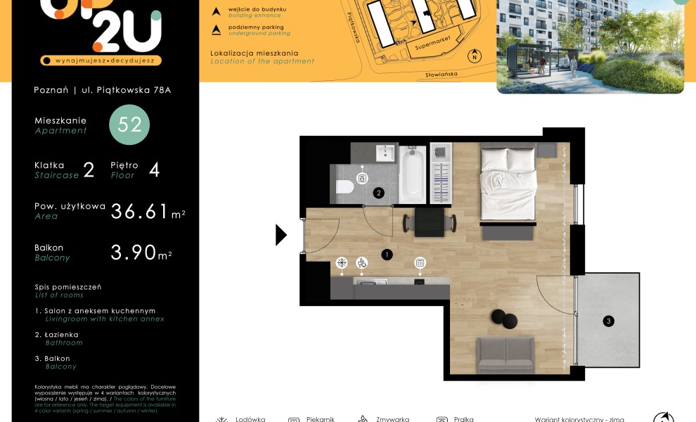 Cena zawiera: opłaty administracyjne, czynsz najmu, szybki internet.