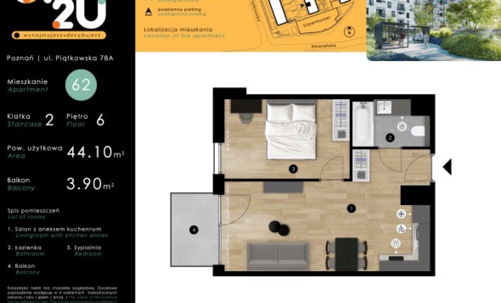 Cena zawiera: opłaty administracyjne, czynsz najmu, szybki internet.