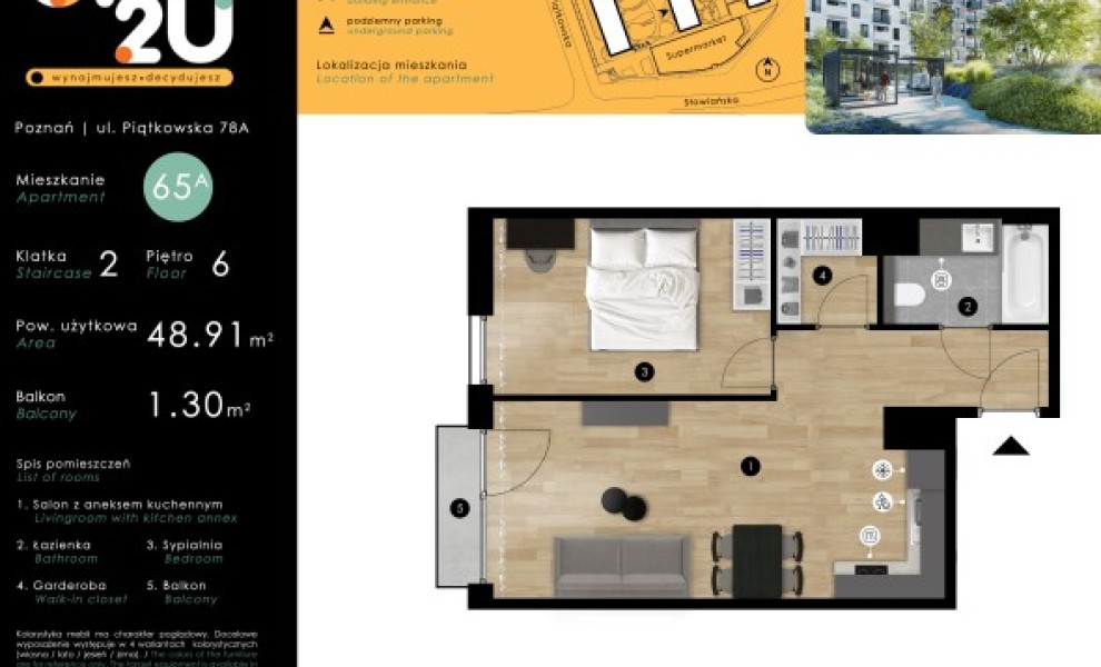 Cena zawiera: opłaty administracyjne, czynsz najmu, szybki internet.