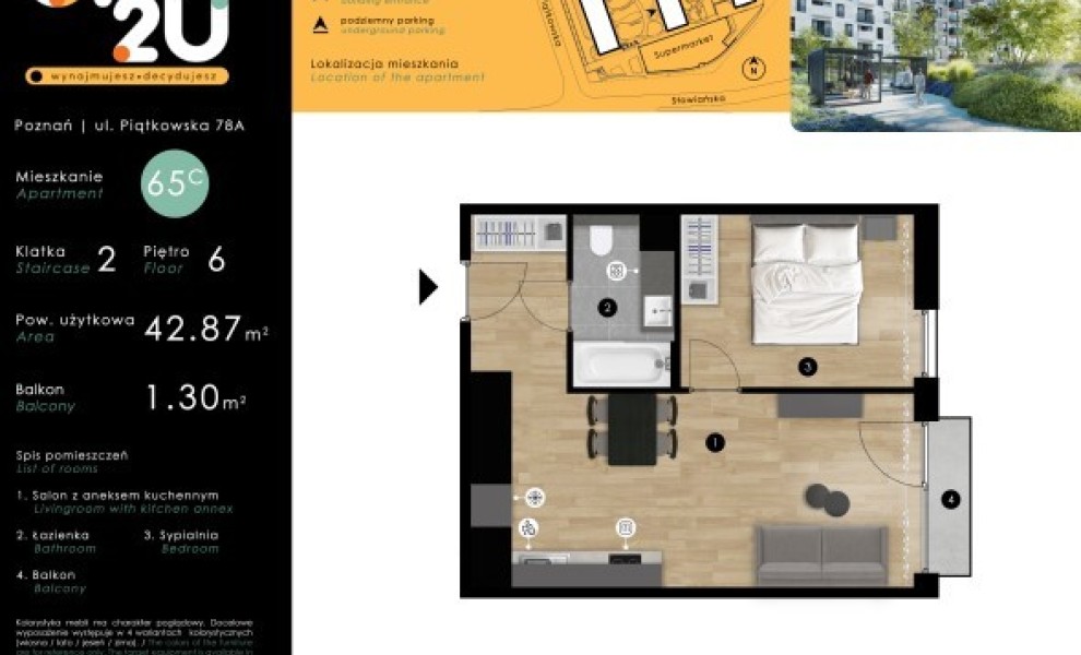 Cena zawiera: opłaty administracyjne, czynsz najmu, szybki internet.