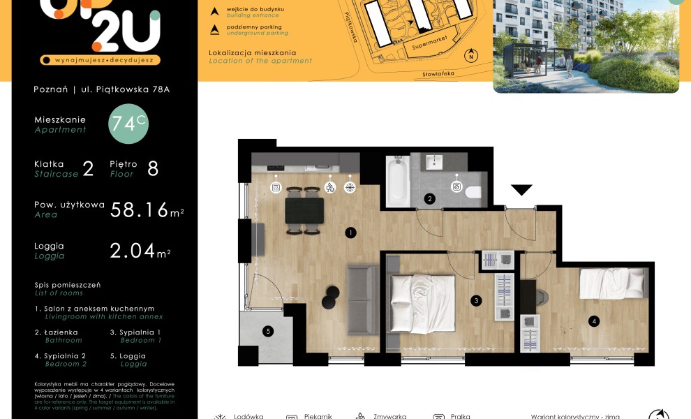 Cena zawiera: opłaty administracyjne, czynsz najmu, szybki internet.