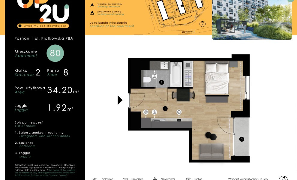 Cena zawiera: opłaty administracyjne, czynsz najmu, szybki internet.